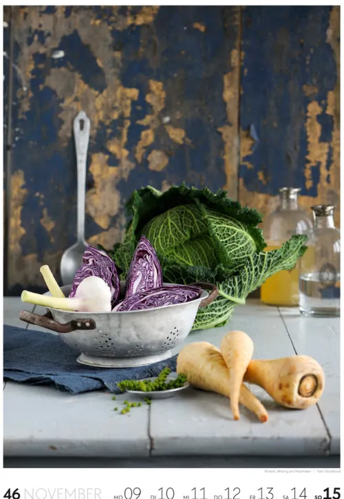 Der perfekte Kalender für echte Foodies: Jede Woche präsentiert unser Wochenkalender ein kunstvoll gestaltetes Bild, das den Genuss und die Vielfalt des Essens zelebriert. Die Ästhetik dieser appetitlichen Stillleben lässt einem das Wasser im Mund zusammenlaufen. Erleben Sie wunderschön arrangierte Köstlichkeiten im Wandel der Jahreszeiten. Ein Kalender für Gourmets, der jede Woche aufs Neue die Geschichte von der Liebe zum Kochen und Genießen erzählt.