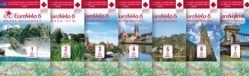 7 Fahrradkarten in einem Set / Cycle Map Set (7 Maps) 1:100 000Von Basel bis Budapest