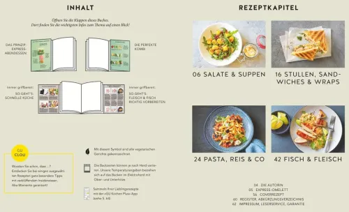 Abends, wenn der anstrengende Tag noch nachwirkt, muss es in der Küche schnell gehen. Dann wünscht man sich 15-Minuten-Gericht, die schmecken, wenige Zutaten enthalten und satt machen. Genau diese Kriterien erfüllt der KüchenRatgeber Express-Abendessen von GU. Das Kochbuch für Anfänger und Hobbyköche liefert basic-cooking auf hohem Niveau und zeigt Pasta, Fleisch und Fisch im Schnelldurchlauf.