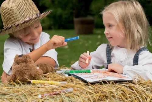 STABILO® Trio® Jumbo. Filzstift für die kleinen Künstler, die mit viel Farbe malen und sich kreativ austoben. Extradicke, eindrücksichere XL-Spitze (ca. 3 mm Strichstärke). Ergonomische dreieckige Griffzone ermöglicht eine korrekte, ermüdungsfreie Stifthaltung. Kappe am Stiftende aufsteckbar. Super-auswaschbare Tinte schon ab 40 °C. Set mit 12 intensiven Farben.