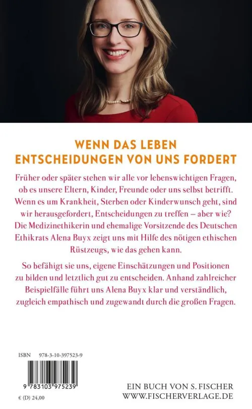 Wenn es um unsere Gesundheit geht, wir mit Krankheit konfrontiert werden, oder es um Leben und Tod geht, stehen wir vor Entscheidungen, die uns nicht selten überfordern. Die Medizinethikerin Alena Buyx greift die vielen ethischen Fragen auf, vor denen wir früher oder später alle stehen. Sie befähigt uns, eigene Einschätzungen und Positionen zu bilden und letztlich gute Entscheidungen zu treffen.