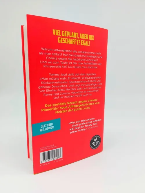 Warum unternehmen alle anderen immer mehr als man selbst? Hat die künstliche Intelligenz eine Chance gegen die natürliche Dummheit? Und wo zum Teufel ist der rote Aufreißfaden der Prinzenrolle hin? Da müsste man doch mal . . . Tommy Jaud stellt sich dem täglichen »Man müsste mal«: Er kämpft um Paybackpunkte, Rückenmuskulatur, Spülmaschinen-Ästhetik und geistige Gesundheit. Und zeigt mit tatkräftiger Hilfe von Ehefrau Nina, Nachbar Oski und den Britisch-Kurzhaar-Kätzchen Fanny und Coucou: Verzetteln ist menschlich, und nix machen macht auch nix.