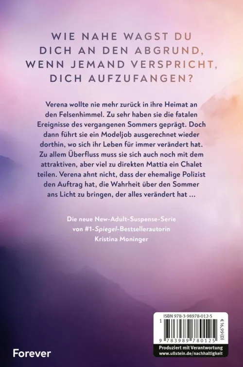 Verena wollte nie mehr zurück in ihre Heimat an den Felsenhimmel. Zu sehr haben sie die fatalen Ereignisse des vergangenen Sommers geprägt. Doch dann führt sie ein Modeljob ausgerechnet wieder dorthin, wo sich ihr Leben für immer verändert hat. Zu allem Überfluss muss sie sich auch noch mit dem attraktiven, aber viel zu direkten Mattia ein Chalet teilen. Verena ahnt nicht, dass der ehemalige Polizist den Auftrag hat, die Wahrheit über den Sommer ans Licht zu bringen, der alles verändert hat . . .