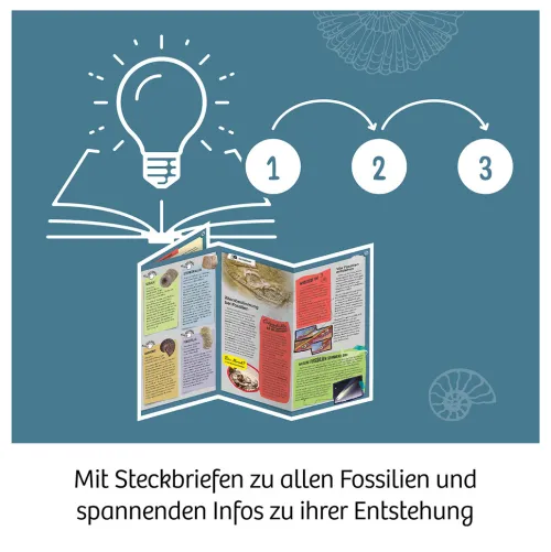 – Die farbige Anleitung erklärt die beste Technik beim Ausgraben und verrät Wissenswertes über Fossilien, Versteinerungen und die Arbeiten eines Urzeit-Forschers.