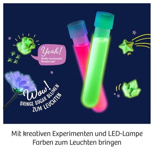 – Cool: Dem geheimnisvollen Leuchten auf der Spur können Kinder von 8 bis 13 Jahren die Box sogar in einen Schwarzlicht-Schaukasten verwandeln.