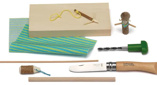 Ausgestattet mit dem original Opinel-Kinderschnitzmesser und einem Lindenholz-Block kann direkt mit dem ersten Werkstück begonnen werden. Schon bald ist ein kleines Boot geschnitzt. Jetzt nur noch den Mast und das Stoffsegel anbringen und schon ist das Se