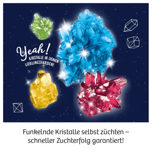 – Einfach die beiliegenden Kristallsalze auflösen und beobachten, wie innerhalb von wenigen Tagen kleine und große Einzelstücke entstehen.