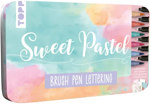 Die hochwertige Metalldose enthält 6 doppelseitige Brush Pens in sanften Pastelltönen. Mit den weichen Brush-Pen-Spitzen geht dir das Lettern besonders leicht von der Hand und mit den Fineliner-Spitzen zauberst du fabelhafte Details und passende Schmuckelemente. Dazu gibt es 5 zuckersüße Design Paper Karten zum Loslettern. Außerdem enthält das Set 2 Bogen Transfersticker, mit denen du deiner Karte den letzten Schliff geben kannst. Probiere selbst, wie einfach es ist, Karten mit Handlettering zu gestalten. Das Set eignet sich auch super als Geschenk für alle Handlettering-Fans.