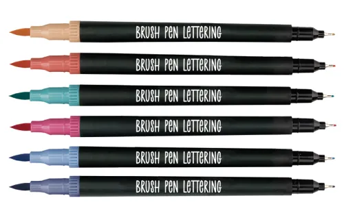 - 6 doppelseitige Brush Pens (mit Finelinerspitze)