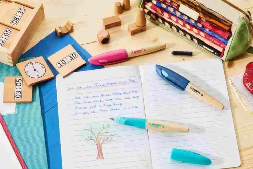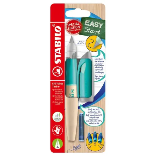 Der erste STABILO Füller mit Holzschaft, in speziellen Versionen für Links und Rechtshänder:innen