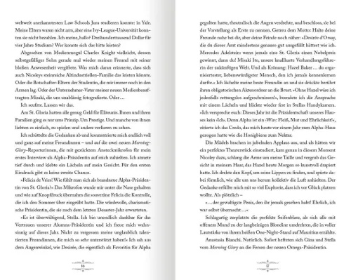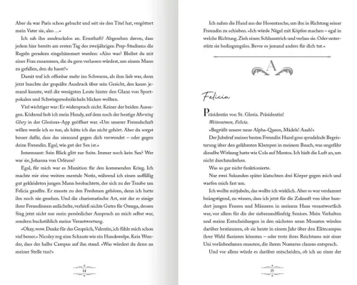 Willkommen am St. Gloria College, wo Ruhm und Reichtum auf seine angehenden Studierenden warten! Zwischen exklusiven Partys und gefährlichen Intrigen kämpfen hier die beiden Häuser Alpha und Omega um ein heiß begehrtes Stipendium, das ihnen die Tür zu einem Leben der Schönen und Reichen ermöglicht. Auch Felicia de Vries, ehrgeizig und fokussiert, hat es auf die akademische Auszeichnung abgesehen. Wenn da nur nicht Valentin Knight wäre. Der gut aussehende Bad Boy tritt für das verfeindete Haus Omega an und bricht dabei alle Spielregeln. Auch die Regeln der Liebe . . .