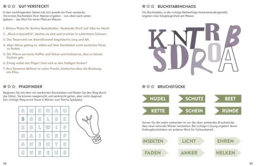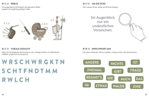 Entwirre wilde Silbenwirbel, finde einen Weg durch verschlungene Buchstabenlabyrinthe, entschlüssle rätselhafte Botschaften und löse spannende Rätselkrimis: Unsere bunte Mischung bringt deine grauen Zellen so richtig in Schwung. Auf geht s in die nächste Rätsel-Runde!