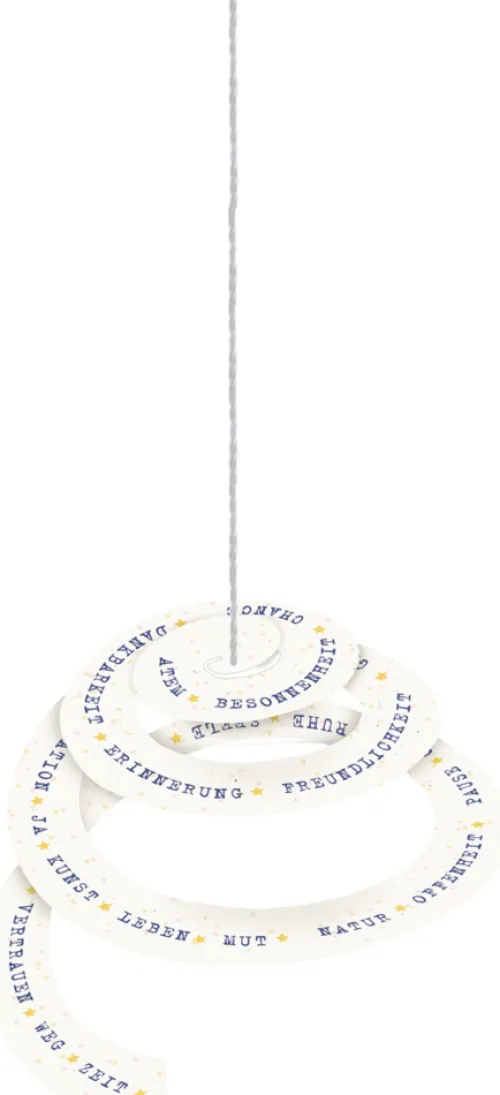 Schiebeschachtel 9 x 11 x 2,5 cm / 24 Textkarten 7 x 10 cm / 1 Karte mit vorgestanztem Windspiel / F