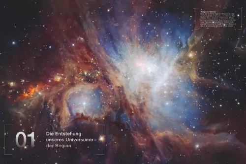 »Dieser Bildband ist ein Blick in den kosmischen Spiegel – und jedem Menschen, der in den dunklen Sternenhimmel blickt, drängt sich die Frage nach dem Anfang auf. Wir kommen auf die Welt, und die Welt ist schon da, zwei große Rätsel mit einem Anfang für alles. «