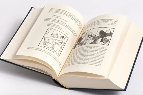 Diese gebundene Hardcoverausgabe hat einen dunkelblauen Cabra-Leder-Einband mit goldener Schmuckprägung, über 400 schwarz-weiß Illustrationen und ein Inhaltsverzeichnis im Anhang. Ein ideales Geschenk für Jung und Alt.