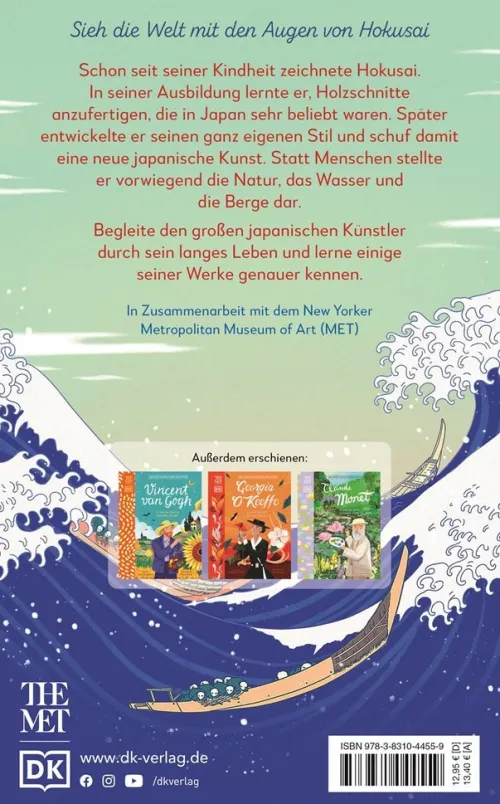 Auch wenn Kinder Malen und Zeichnen lieben, können sie mit der Kunst im Museum oft wenig anfangen. Zusammen mit einem der weltweit größten und renommiertesten Museen, dem Metropolitan Museum of Art (The MET) in New York, entstand diese Kunstbuch-Reihe, die Kindern die spannende Welt berühmter Künstler*innen auf wunderbare Weise näherbringt. Im Mittelpunkt stehen die Biografien und Werke weltbekannter Maler*innen wie Hokusai, dessen Leben eine Inspiration für die kreativen Künstler*innen von morgen ist.