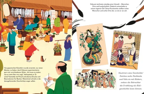 Kinder erleben große Kunst: Die anschaulich illustrierte Künstler-Biografie des berühmten Malers Hokusai.