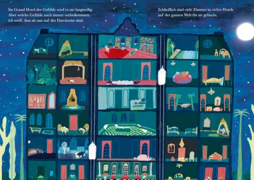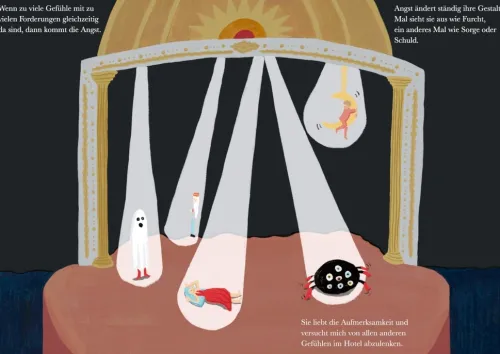 Im Grand Hotel wird es nie langweilig. Ob positiv oder negativ, ob groß oder klein – egal welche Gefühle einziehen, sie sind nur auf der Durchreise. Manche Gäste sind pflegeleicht, angenehm und unterhaltsam, wie Zuversicht, Gemütlichkeit und Freude. Andere sind anspruchsvoll und verlangen viel Aufmerksamkeit oder werden kompliziert. Doch wenn man sich Zeit für sie nimmt, findet man heraus, was sie wirklich brauchen.