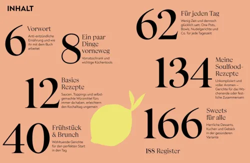 – Über 80 Gerichte auf Basis pflanzlicher und entzündungshemmender Nahrungs- und Lebensmittel