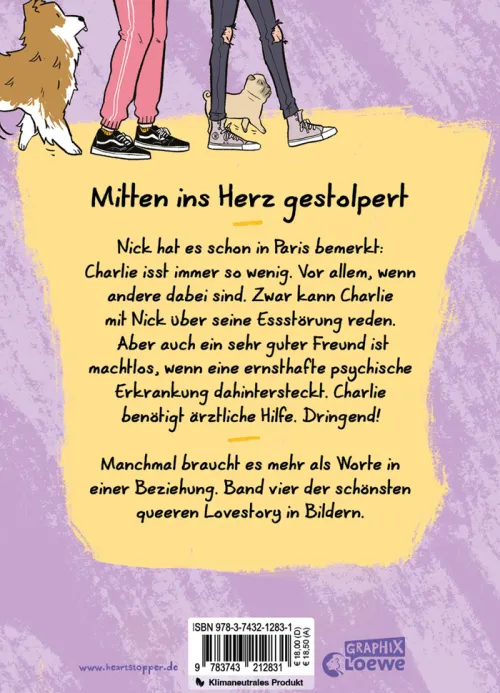 Immer öfter leiden Jungen unter einer Anorexie, häufig verbunden mit anderen Zwangsstörungen oder Depressionen. Wie gut, dass Charlie in Nick einen so aufmerksamen und liebevollen Freund hat. Der vierte Teil des erfolgreichen Webcomics Heartstopper als Graphic Novel in der deutschen Übersetzung von Vanessa Walder.