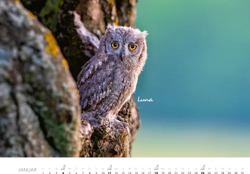 Die scheuen Jäger der Nacht im Großformat. Stimmungsvolle Bilder dokumentieren die Eleganz und Magie dieser außergewöhnlichen Vögel. Das Extra an diesem Kalender sind die charmanten Namen, die jedem Vogel eine persönliche Note geben. Ob Leopold, Eleonore, Egon oder Jolante – die sympathischen Namen von jeder Eule machen diesen Kaelnder zu einer netten Geschenkidee für Namensträger, Familie und Freunde zu Weihnachten oder zum Geburtstag. Dazu die traumhaften und wunderschönen Aufnahmen im großen Posterformat – für Eulenliebhaber ein ganz besonderer Jahresbegleiter! Mit großem Wandplaner für den perfekten Jahresüberblick! Hochwertige Ausstattung: – 14 Seiten Kunstdruckpapier – Cover mit Glanzlack veredelt – stabile Rückwand – silberne Spiralbindung – nachhaltig in Europa produziert.