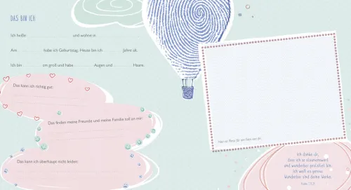 Die Erstkommunion ist ein sehr aufregender und bedeutender Tag im Leben von Grundschulkindern. Damit die Erinnerungen an diesen besonderen Tag in der Kirche und mit der Familie lebendig bleiben, bietet dieses poetisch gestaltete Album den Kindern sowie den Gästen viel Platz für gute Wünschen oder einfach zum kreativen Eintragen, Kleben und Gestalten. So wird dieses Fest unvergesslich!