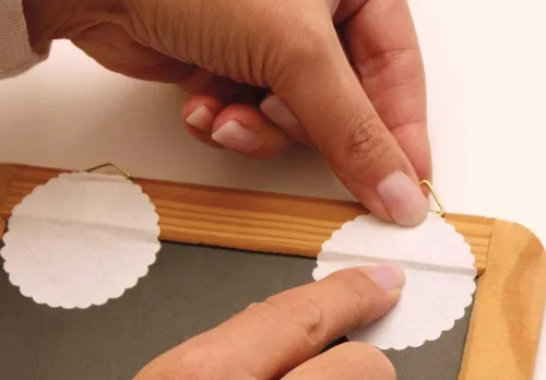 Zum Aufkleben auf Bildern, Plakaten, Poster, Kalender, Fotos, Deko, Schilder – zu Hause oder im Büro. Haften auf allen glatten Oberflächen wie z. B. auf Glas, Porzellan, Keramik, Holz, Pappe. Haftet nicht auf Hartschaumplatten und kaschierten Flächen. Die Aufhänger auf der wasserlöslich gummierten Seite befeuchten und auf den Untergrund aufkleben. Etwa