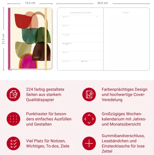 – Übersichtlich, praktisch, gut: Edler Design Diary Abstract-Taschenkalender 2026- Terminkalender im A5-Format für den bequemen Überblick: Wochenübersicht mit viel Raum für Notizen und Extraseiten für Organisatorisches- Liegt angenehm in der Hand: SoftTouch-Einband, dessen Cover mit einem abstrakten Motiv besticht- Alle Termine und wichtigen To-dos im Griff: Chefplaner mit tollen Extras wie Lesebändchen, Froschtasche und Leinenrücken- Schönes Design und hochwertige Ausstattung: Die Terminplaner von Heye im Athesia Kalenderverlag