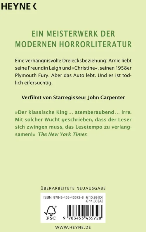 Eine verhängnisvolle Dreiecksbeziehung: Arnie liebt seine Freundin Leigh und »Christine«, seinen 1958er Plymouth Fury. Aber das Auto lebt. Und es ist tödlich eifersüchtig.