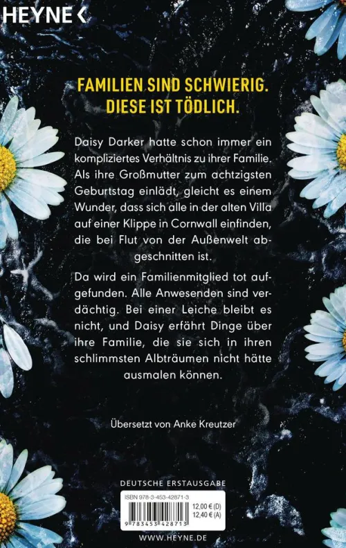 Daisy Darker hatte schon immer ein schwieriges Verhältnis zu ihrer Familie. Jahre ist es her, dass sie alle im selben Raum waren. Als Daisys Großmutter zu ihrem achtzigsten Geburtstag an Halloween einlädt, gleich es daher einem Wunder, als sich alle in der alten Villa auf einer Klippe in Cornwall einfinden. Dorthin gelangt man nur bei Ebbe. Sobald die Flut einsetzt, ist die nicht gerade harmonische Familie für acht Stunden in dem düsteren Haus gefangen. Plötzlich wird ein Familienmitglied tot aufgefunden. Hilfe von außen lässt sich nicht rufen, ein Sturm kappt jegliche Verbindung. Alle sind verdächtig. Bei einer Leiche bleibt es nicht, und Daisy entdeckt Dinge über ihre Familie, die sie sich in ihren schlimmsten Albträumen nicht hätte ausmalen können.
