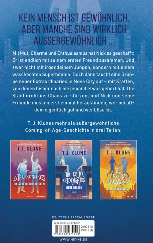 Mit Mut, Charme und Enthusiasmus hat Nick es geschafft: Er ist endlich mit seinem ersten Freund zusammen. Und zwar nicht mit irgendeinem Jungen, sondern mit einem waschechten Superhelden. Doch dann taucht eine Gruppe neuer Extraordinaries in Nova City auf – mit Kräften, von denen bisher noch nie jemand etwas gehört hat. Die Stadt droht ins Chaos zu stürzen, und Nick und seine Freunde müssen erst einmal herausfinden, wer bei alldem eigentlich gut und wer böse ist . . .