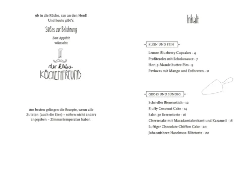 Unwiderstehliche Köstlichkeiten – ob klein und fein oder groß und üppig – von leckeren Cupcakes bis zu cremigem Bienenstich. Du hast dir was Süßes verdient! Der kleine Küchenfreund gratuliert von Herzen. Nur für dich hat er die besten Tortenbäcker belauscht und mitgeschrieben.