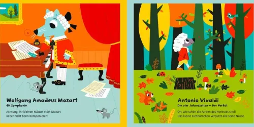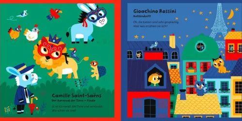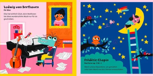 Spielerisch und interaktiv führt dieses Soundbuch schon die Kleinsten mit berühmten Stücken in die Welt der klassischen Musik ein. In diesem großformatigen Buch erklingen 12 Melodien. Die Kinder können dem lebhaften Auszug aus „Der Karneval der Tiere“, dem sanften „Für Elise“ von Beethoven und dem „Hummelflug“ von Rimski-Korsakov lauschen und dabei die bunten und lustigen Bilder betrachten. Natürlich dürfen auch Kompositionen von weitere Berühmtheiten wie Vivaldi, Rossini und Chopin nicht fehlen.