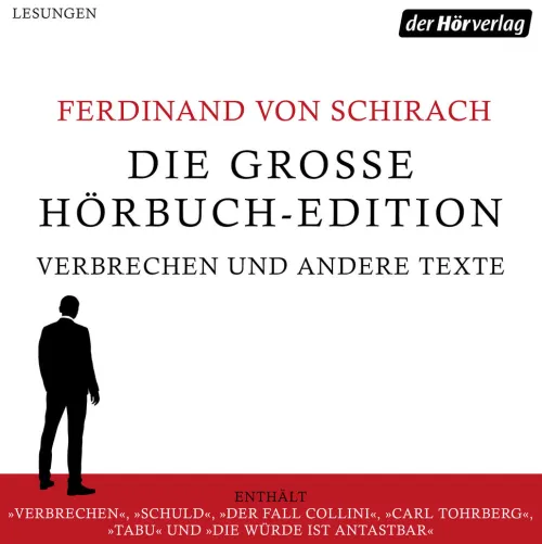 Ferdinand von Schirach erzählt unglaubliche Geschichten, die dennoch wahr sind. Präzise, schnörkellos, lakonisch wie ein Raymond Carver und gerade deswegen mit unfassbarer Wucht. Diese Edition zeigt neben seinen Stories die ganze Bandbreite seines Schaffens. Denn auch seine Romane sind »fesselnd wie ganz großes Kino« (BRIGITTE). In meisterhaften Interpretationen sind hier »Der Fall Collini« und »Tabu« zu hören. Darüber hinaus beschäftigt sich Ferdinand von Schirach in seinen Essays mit den großen Themen unserer Zeit warum der Terrorismus letztlich über die Demokratie entscheidet und geht zugleich sehr persönlichen Gedanken nach, über das Schreiben, das Lesen mit dem iPad und das Rauchen.