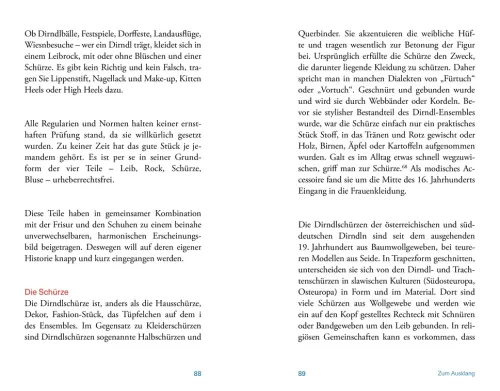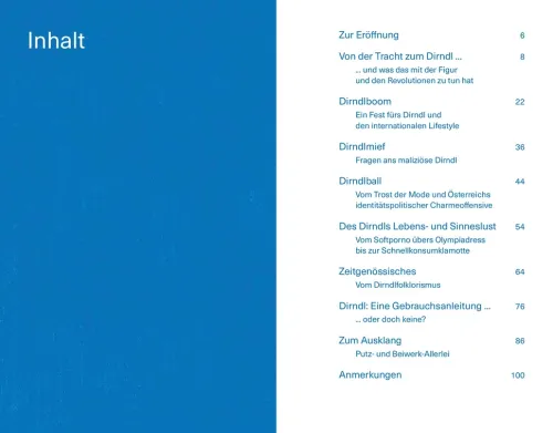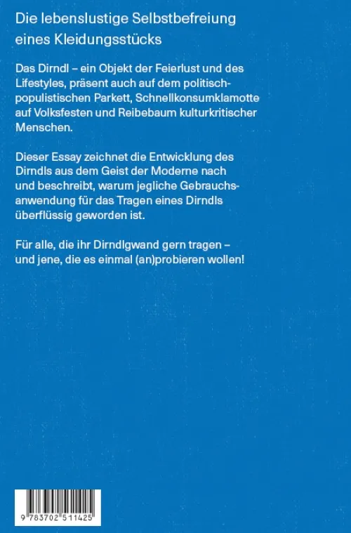 Das Dirndl, ein Objekt der Feierlust und des Lifestyles, präsent auch auf dem politisch-populistischen Parkett, Schnellkonsumklamotte auf Volksfesten und Reibebaum kulturkritischer Menschen. Dieser Essay zeichnet die Entwicklung des Dirndls aus dem Geist der Moderne nach und trägt dem wirtschaftshistorischen wie sozialpolitischen Einfluss darauf Rechnung.
