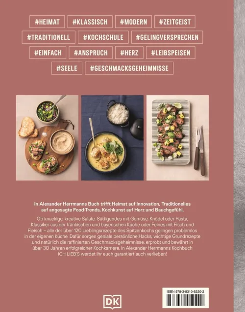 Mit „Ich lieb’s“ gibt Alexander Herrmann ein ganz besonderes Versprechen zu seinen Rezepten ab und setzt bei den Rezepturen nicht nur auf kulinarische Perfektion, sondern vor allem auf die emotionale Kraft und Freude am Genießen! In diesem sehr persönlichen Kochbuch versammelt der Sternekoch seine liebsten und besten Rezepte aus seinen erfolgreichsten Büchern, vollständig überarbeitet und neu interpretiert. Dabei trifft Heimat auf Innovation, Traditionelles auf angesagte Food-Trends, Kochkunst auf Herz und Bauchgefühl – ganz einfach typisch Alexander Herrmann. Ob knackige, kreative Salate, Sattigendes mit Gemüse, Knodeln oder Pasta, Bewahrtes aus der frankischen und bayerischen Küche oder Feines mit Fisch und Sterneküchen-Charakter: Alle 120 Rezepte in diesem Buch gelingen problemlos in der eigenen Küche. Dafür sorgen geniale Hacks, wichtige Grundrezepte à la Kochschule und natürlich die raffinierten Geschmacksgeheimnisse vom Sternekoch, gesammelt und verfeinert in über 30 Jahren Kochleidenschaft. Probiert es aus: In dieses Kochbuch werdet ihr euch verlieben!