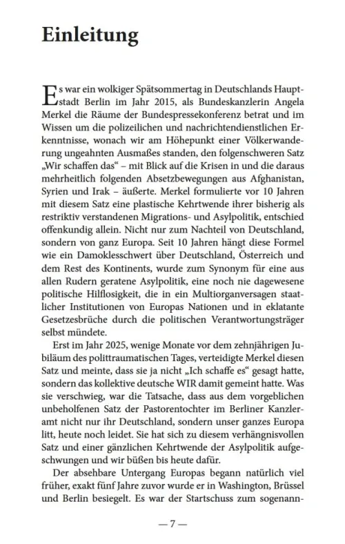 Es war der 31. August 2015, als Deutschlands ehemalige Bundeskanzlerin Angela Merkel in einer Bundespressekonferenz mit diesem Satz die für Europa, aber vor allem für Deutschland und Österreich verheerende Politik der „Willkommenskultur“ einleitete. Was folgte, war eine in dieser Form nie dagewesene Migrationsbewegung von Hunderttausenden Flüchtlingen aus dem Nahen Osten und Nordafrika, die unkontrolliert, unregistriert und ungebremst die Grenzen stürmten und „Asyl“ schrien.