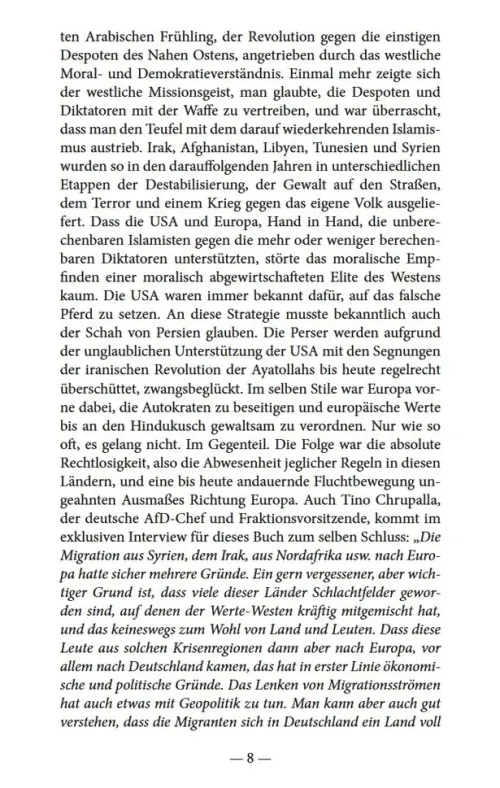 Schonungslos deckt Gerald Grosz die katastrophalen Folgen für Deutschland und Österreich auf und lässt dabei viele bekannte und involvierte Persönlichkeiten, wie Václav Klaus, Hans-Georg Maaßen, Herbert Kickl, Harald Vilimsky und Tino Chrupalla, die Entwicklung der Flüchtlingskrise aus ihrer Sicht beurteilen.