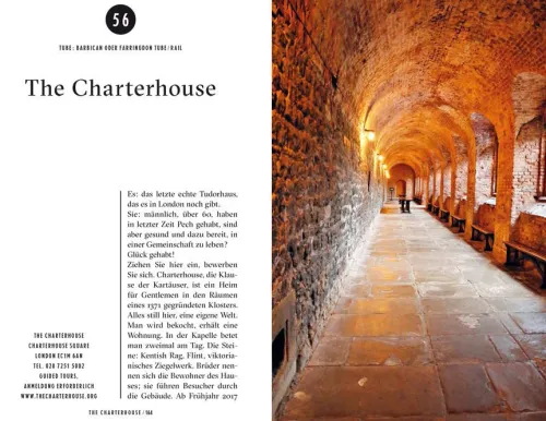 Zum Beispiel so: Beginnen Sie den Tag mit einem Morgenspaziergang an der Themse, vorbei an Westminster Abbey. Anschließend geht es in Soane’s Museum, wo Sir John, Architekt und Exzentriker, seine in aller Welt gesammelten Kunstschätze präsentiert. Von dort schlendert man durch das London der Juristen mit seinen Höfen und seiner Stille und taucht in Charles Dickens‘ Wohnhaus in 48, Doughty Street in das viktorianische Leben ein. Von hier kann man ein typisches Londoner Village entdecken, East Bloomsbury. Der Hunger wird im Pub The Lamb gestillt, wo Ted Hughes und Sylvia Plath Stammgäste waren. »Treiben lassen«, flüstert die Stadt, in der National Portrait Gallery studiert man Gesichter und fährt in den obersten Stock, um in der Bar Londons Skyline auf sich wirken zu lassen. Wird es dunkel, springen zahllose Lichter an, Covent Garden, ein überbauter Markt mit Geschäften und Restaurants, spielt Oper mitten in der Stadt.