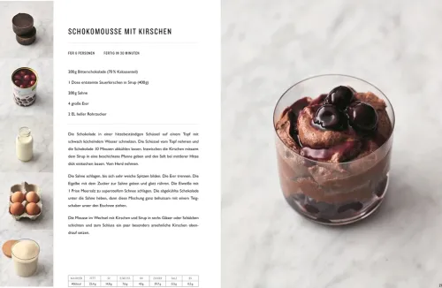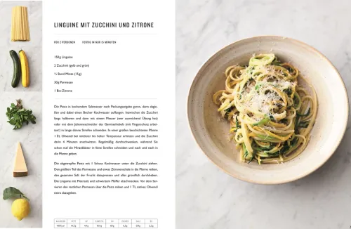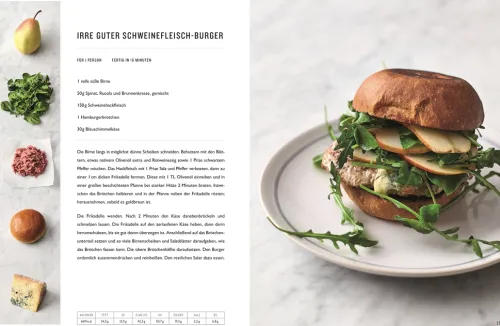 Zu jedem Rezept gibt es eine bebilderte Zutatenliste, Portions- und Zeitangaben, eine kurze, leicht verständliche Anleitung, eine Übersicht über die Nährwerte und, nicht zu vergessen, ein fantastisches Foto von dem Gericht.