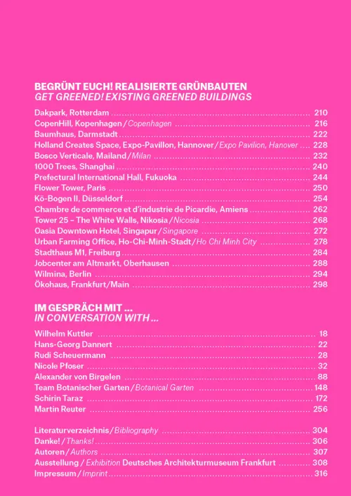 Das Handbuch zum Gebäudegrün in seiner dritten erweiterten Auflage richtet sich an die Bürgerschaft ebenso wie an Architekt*innen und Bauherr*innen. Es liefert Antworten auf die am häufigsten gestellten Fragen – von der Bestands- bis zur Neubaubegrünung, von finanziellen Förderungen und praktischen Tipps zur Pflanzenwahl bis zu ökologischen Auswirkungen auf das Stadtklima. Es ist an der Zeit – und viele Beispiele in Deutschland und weltweit zeigen, dass Grünbauten möglich und wachsende Realität sind.