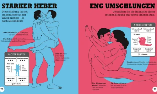 Zu jeder Position gibt es die Info, welche Muskeln beansprucht werden, wie beweglich die Paare sein sollten, wie viel Energie beim Bettsport verbrannt wird und wie lange die Stellung idealerweise zu halten ist. Ein prickelndes Geschenk nicht nur zum Valentinstag oder Junggesellenabschied.