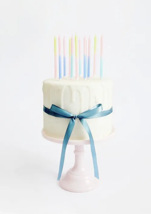 Die Dip-Dye-Kerzen in Blau, Pink und Gelb zeichnen sich durch ihren farbenfrohen Farbverlauf und ihre sorgfältige Verarbeitung aus. Jede Kerze ist mit einem lebensmittelechten Kerzenhalter aus Polypropylen versehen, der direkt an der Kerze fixiert ist. Die Verpackung ist vollständig plastikfrei, was das Set zu einer nachhaltigen und zugleich dekorativen Wahl macht. – inklusive weißer Kerzenhalter aus lebensmittelechtem Polypropylen – plastikfreie Verpackung – Maße: Ø 0, 7 cm x 12, 5 cm – Material: Paraffinwachs mit Baumwolldocht – Inhalt: Set mit 14 Kerzen in 3 Designs Kerzen Dip Dye, Blau/Pink/Gelb, 14 Stk, Ø 0, 7 cm x 12, 5 cm, inkl. 14 Kerzenhalter.