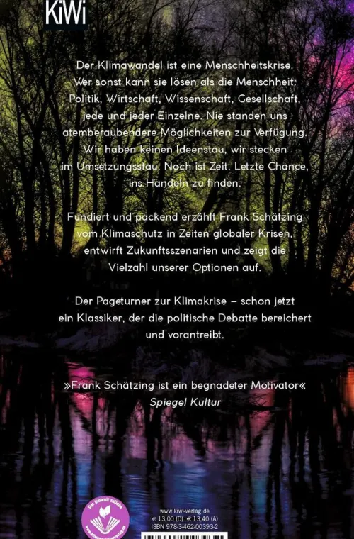 Wissenschaftlich fundiert, spannend und nie ohne Humor entwirft Frank Schätzing verschiedene Szenarien unserer Zukunft, in denen wir mal versagt, mal obsiegt haben. Wir lernen die Protagonisten und Antagonisten kennen, Verantwortliche aus Politik, Wirtschaft und Gesellschaft, begegnen Aktivisten, Leugnern und Verschwörungstheoretikern, bevor sich der Blick auf das überwältigende Panorama des Machbaren öffnet und der Autor Wege aufzeigt, wie wir der Klimafalle entkommen und alles doch noch gut, nein, besser werden kann. Die Welt zu retten ist möglich wenn wir nur wollen.