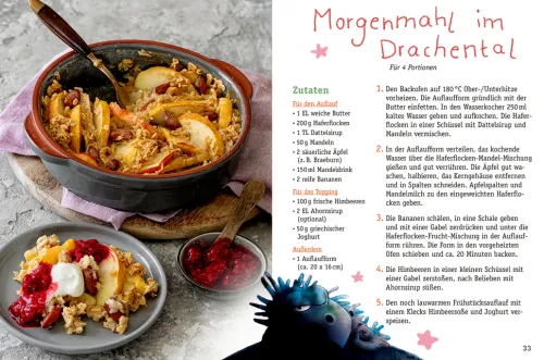 Im Kochbuch zum Kinderbuch Bestseller zeigen uns Furzipups und seine Freunde, was das Drachental kulinarisch zu bieten hat. Ob Kesselküchlein, Mammut-Kacka, Drachen-Fürzchen oder Pups-Pott – mit mehr als nur einer Prise Humor machen die Rezepte Lust auf gemeinsame Kochabenteuer mit dem berühmten Knatterdrachen!