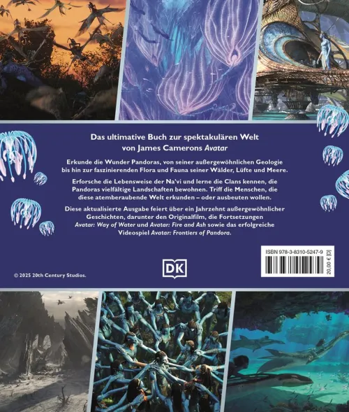 Schwebende Berge, üppige Regenwälder, endlose Ozeane – und jetzt auch glühende Vulkanlandschaften! Dieses bildgewaltige Avatar Buch entführt dich in die faszinierende Welt von Pandora und fasst die Geschehnisse aus Avatar – Aufbruch nach Pandora und Avatar: The Way of Water eindrucksvoll zusammen. In großformatigen Original-Bildern und fesselnden Texten beleuchtet das Filmbuch die Bräuche der Na’vi, sowie die geheimnisvolle Flora und Fauna Pandoras. Als besonderes Extra enthält diese vollständig überarbeitete Neuausgabe eine exklusive Vorschau auf Avatar: Fire and Ash: Fans können erste Bilder des geheimnisvollen Asche-Clans bestaunen und sich auf die lang ersehnte Fortsetzung einstimmen!