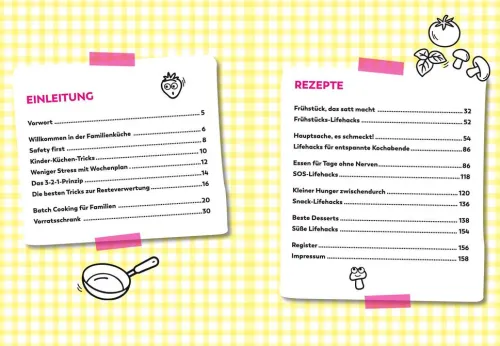- Über 100 schnelle unkomplizierte Rezepte und Hacks , die der ganzen Familie schmecken und beim Kochen helfen
