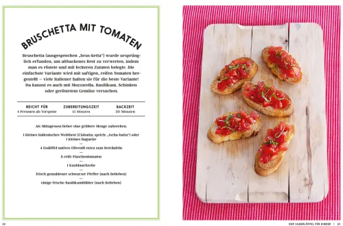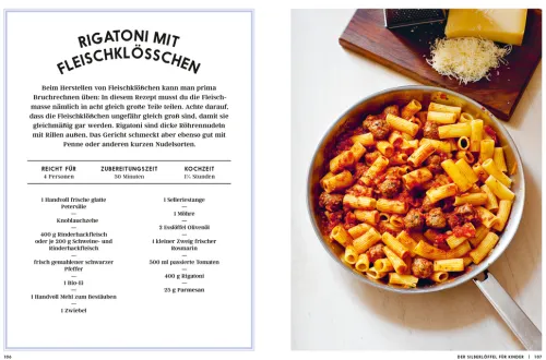 Nudeln und Pizza stehen auf der Beliebtheitsskala bei Kindern ganz weit oben. Nach dem Welterfolg der Silberlöffel Reihe kommt die „Bibel der italienischen Küche“ für Kinder jetzt in einer brandneuen Ausgabe! Dieses liebevoll gestaltete Kinderkochbuch weckt selbst bei den Kleinsten die Lust am Selberkochen. Originalrezepte aus dem Silberlöffel wurden kindgerecht aufbereitet, Schritt für Schritt erklärt und vermitteln spielend grundlegende Küchentechniken. Alle Gerichte wurden von Experten für Kinderernährung ausgewählt, um eine ausgewogene und gesunde Ernährung zu gewährleisten.