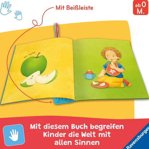 Die bunte Welt in einem Buch: Beim Essen, Anziehen oder auf dem Spielplatz – hier entdecken die Kleinen ihre Lebenswelt. Dieses federleichte Stoffbuch für Kinder ab Geburt kommt mit ins Bett, in den Sandkasten, in die Badewanne und auch mal in die Waschmaschine. Unser buntes Knuddel-Knautsch-Buch lädt dazu ein, Bücher mit allen Sinnen zu entdecken – egal, ob mit Händen oder Zähnen. Die Beißleiste aus 100% Silikon sorgt für extra Knabberspaß.