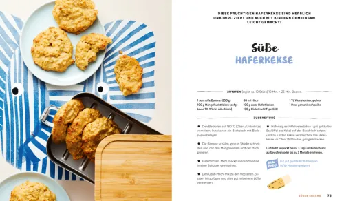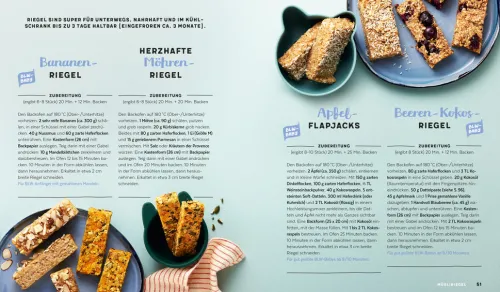 Die über 60 Rezepte für daheim und unterwegs (vorwiegend vegetarisch) punkten mit überschaubaren Zutatenlisten, Meal-Prep-Tipps und Aufbewahrungshinweisen. So ist die Zubereitung auch im Alltag mit Kindern einfach machbar. Und weil oft kleine Geschwister mitessen, sind die Rezepte mit Notizen für Beikostanfänger und Baby-led Weaning (BLW) versehen. Die Großen dürfen übrigens auch mal naschen! Gesunde Familienküche für alle.